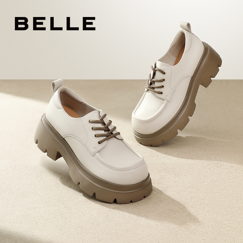 百丽女鞋子厚底牛津鞋女新款乐福黑色小皮鞋深口单鞋子B1Q1DAM4预