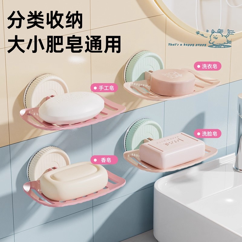 糖果色肥皂盒香皂置物架浴室免打孔吸盘壁挂式沥水不积水收纳架