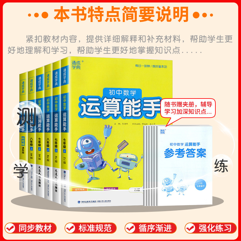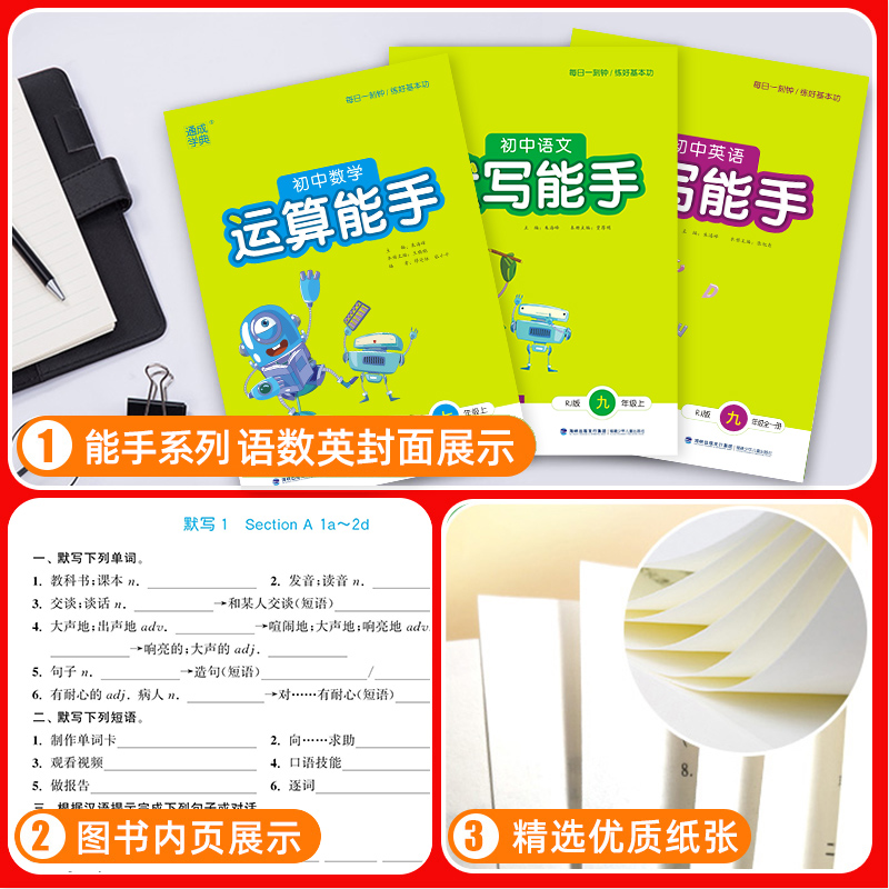 江苏专用】2025秋初中默写运算能手七八九年级上册语文数学英语初中生口算题卡同步专项训练习册初一二三课时作业本通成学典