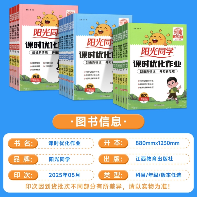 2025秋阳光同学课时优化作业一二三四年级五六年级上册河南专版语文数学英语人教版小学专项训练同步课堂笔记练习册科学计算知识
