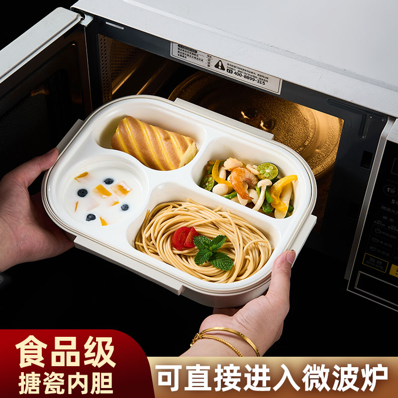 微波炉加热专用仿搪瓷饭盒上班族儿童学生保温不锈钢分隔便当餐盒