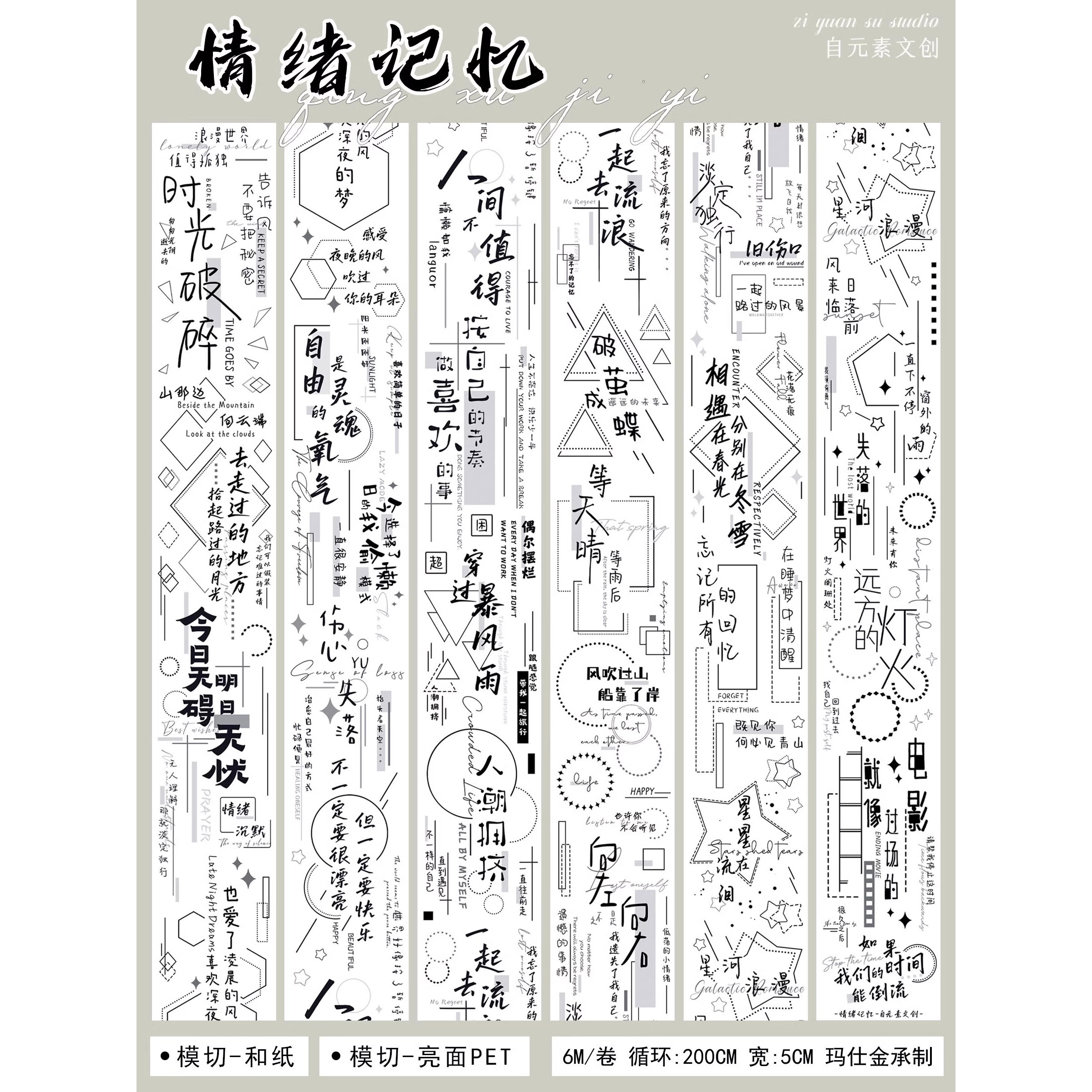 社团文字字素手帐胶带分装合集1和纸PET文字素材盐系复古手帐贴纸