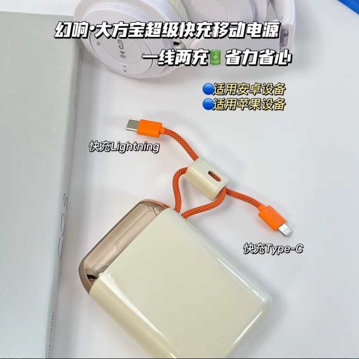 幻响S17大方宝超级快充移动电源大容量便携自带双线安卓苹果双充