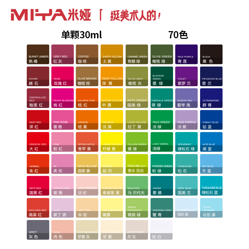 米娅水粉颜料替换装美术生专用便携小容量果冻颜料单颗补充装自选颜色30/60/80/90/100ml套装官方旗舰店