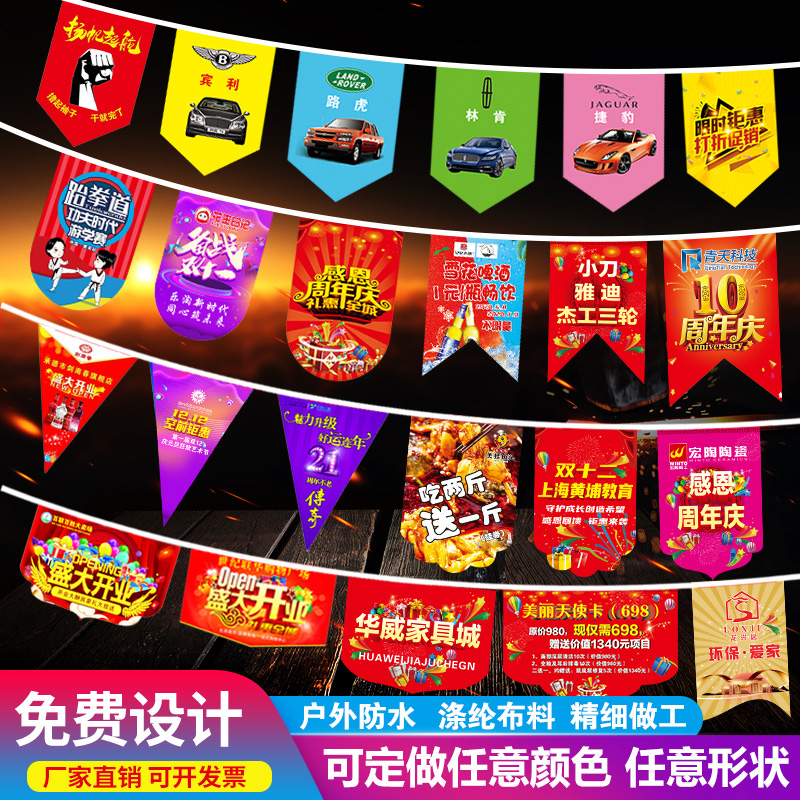 彩旗三角串旗小彩旗三角旗批发结婚小彩旗户外定制旗幼儿园五彩旗公司庆典布置装饰彩旗交通工地红白色警戒旗