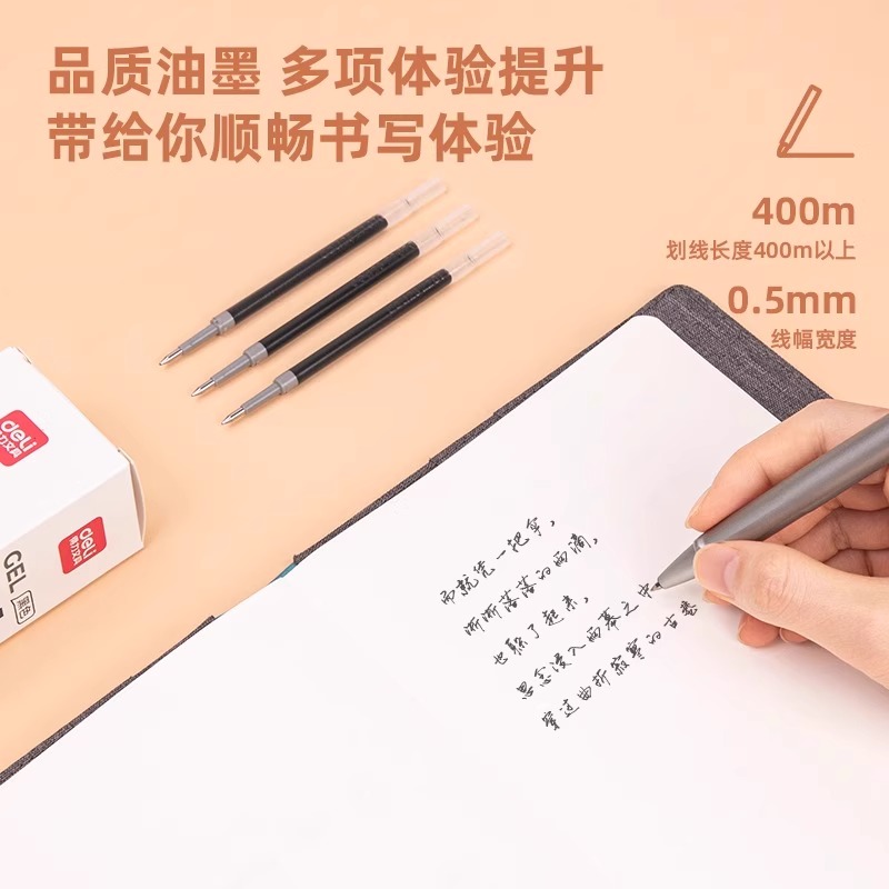 得力中性笔替芯学生按动笔芯0.5mm子弹头黑色蓝色臻顺滑笔芯红芯