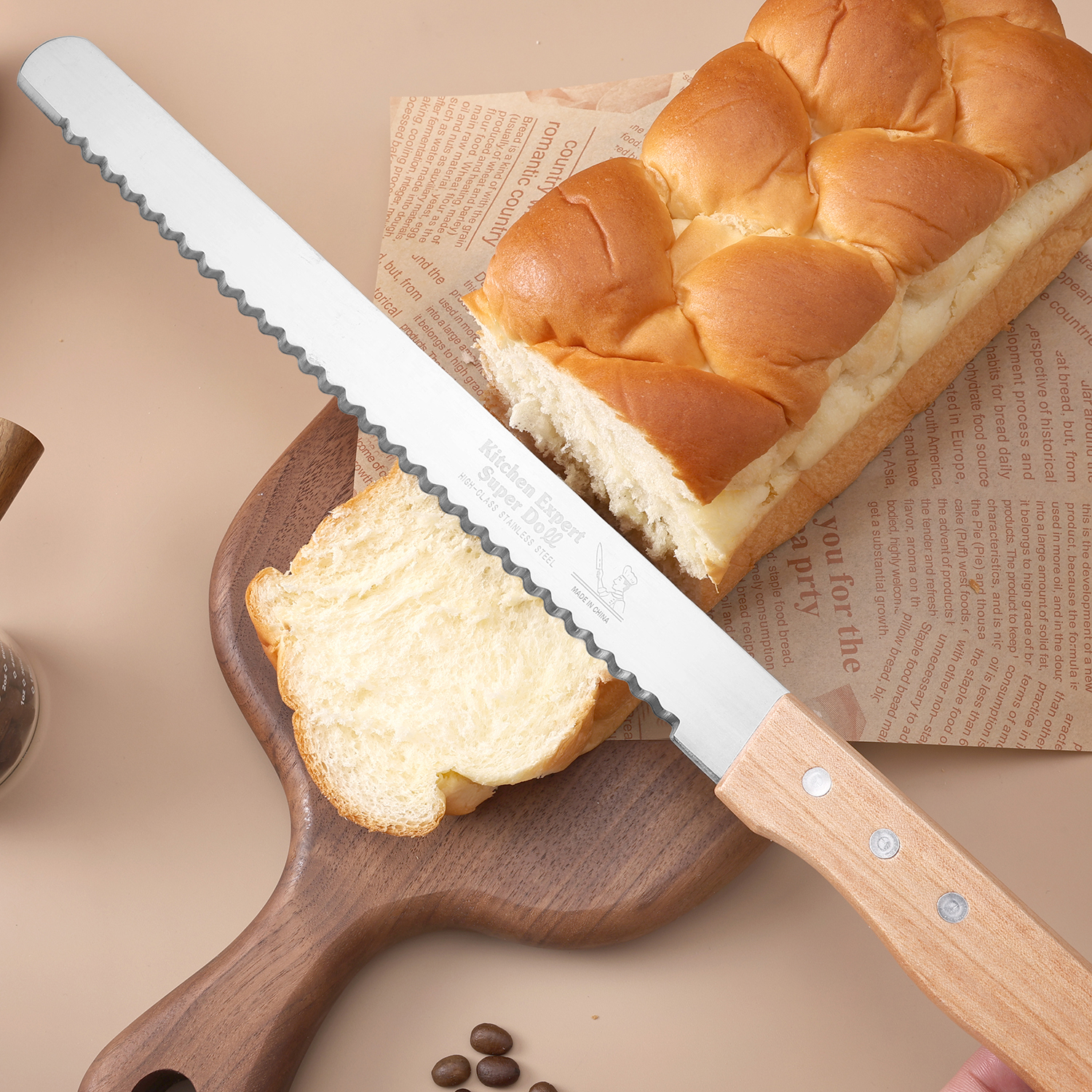 新品不锈钢波浪齿锯齿切刀8寸10寸12寸切蛋糕烘焙工具面包刀具