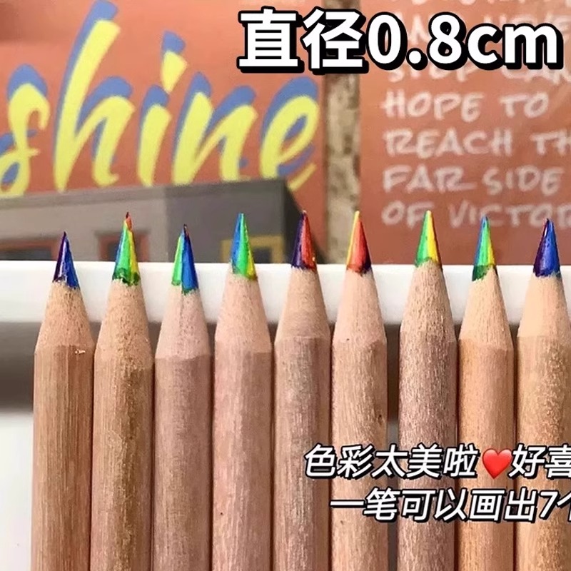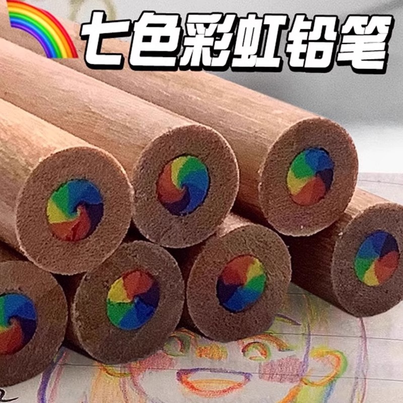 七色彩虹铅笔一笔多色铅笔彩虹笔渐变色彩混色DIY彩铅笔手绘儿童小学生幼儿园美术绘画专用无毒填色画笔工具