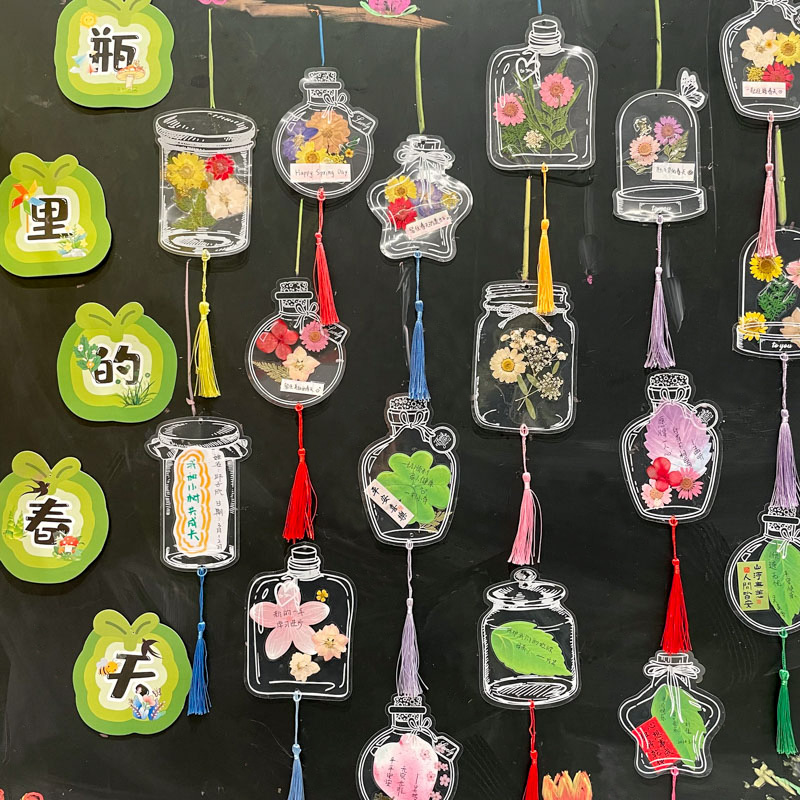 创意透明瓶子里的春天干花书签膜幼儿园环创小学生手工DIY材料包