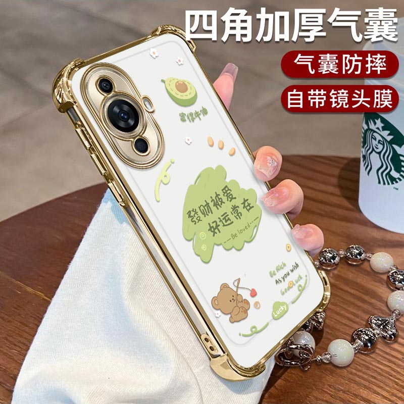 适用华为nova11手机壳发财被爱电镀四角防摔NOVA11PRO简约硅胶气囊全包11Ultra高颜值手链女款新款保护套