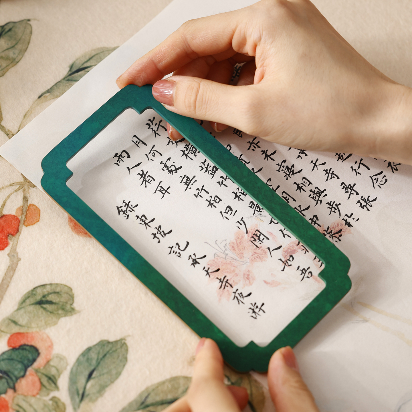 镇尺镇纸黄铜书法刻度尺压纸压书仿圈镇尺方框创意热着色实心金属毛笔小楷练字打格纸镇文房四宝青绿