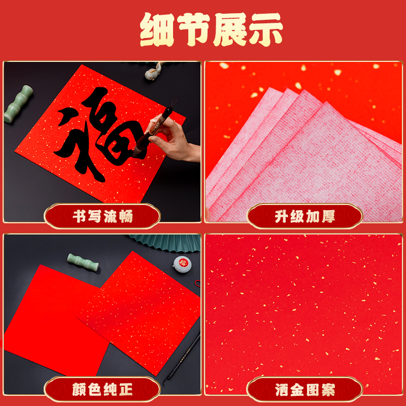 万年红福字纸空白对联专用纸洒金春联手写2025年新款自写套装红色斗方宣纸小张儿童写福字的红纸春节书法用纸