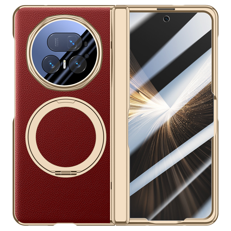 适用荣耀magicv5手机壳MHG一AN00电镀素皮华为魔术v5侧中轴转轴maigcv壳膜一体migicv全包皮革5g磁吸指环支架
