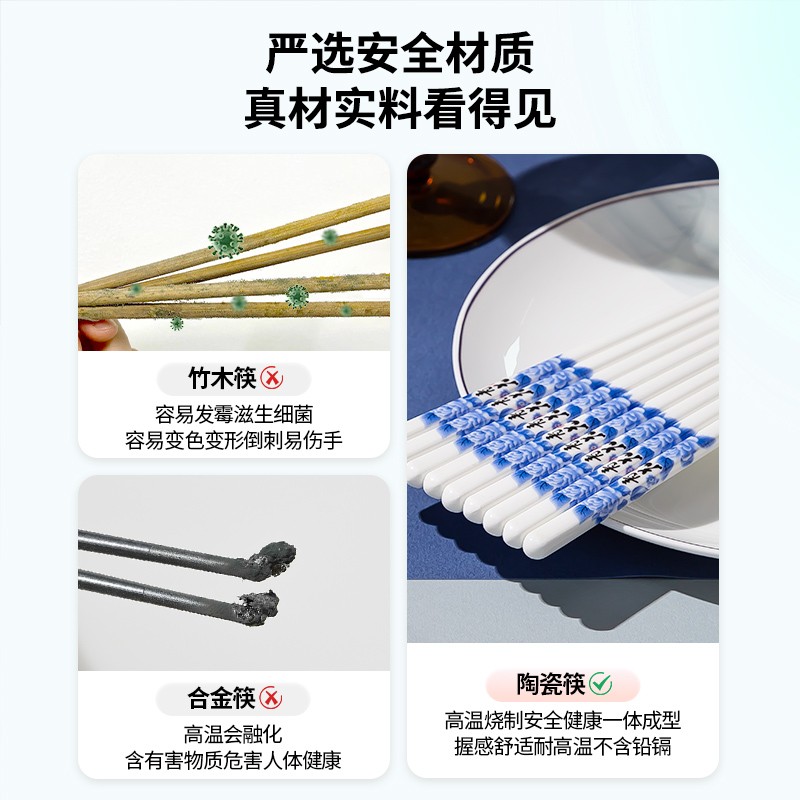 10双景德镇高档青花陶瓷筷子食品级耐高温家用抗菌防霉新款高颜值