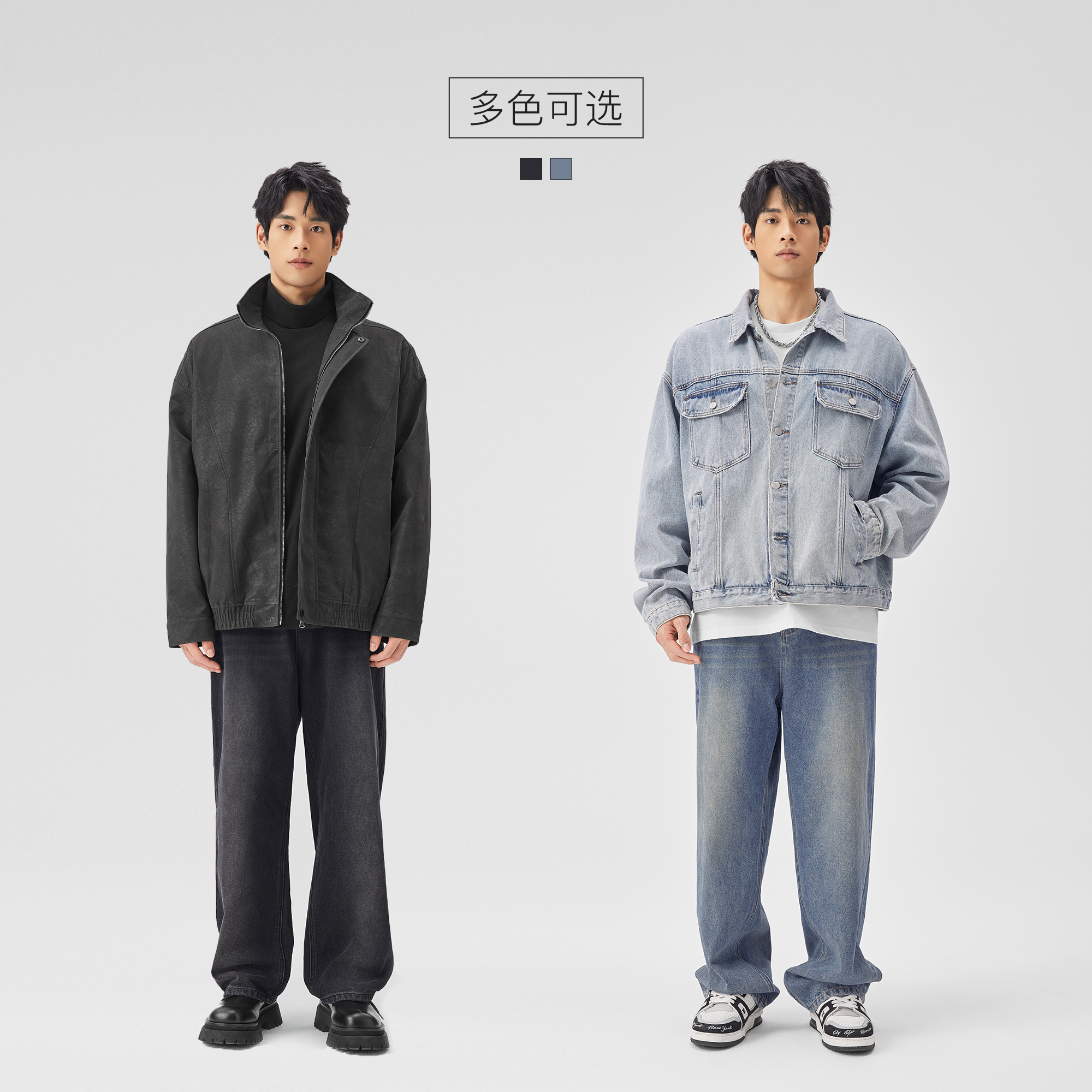 BODYDREAM BM水洗做旧重磅牛仔裤男秋季直筒裤宽松裤阔腿裤休闲裤