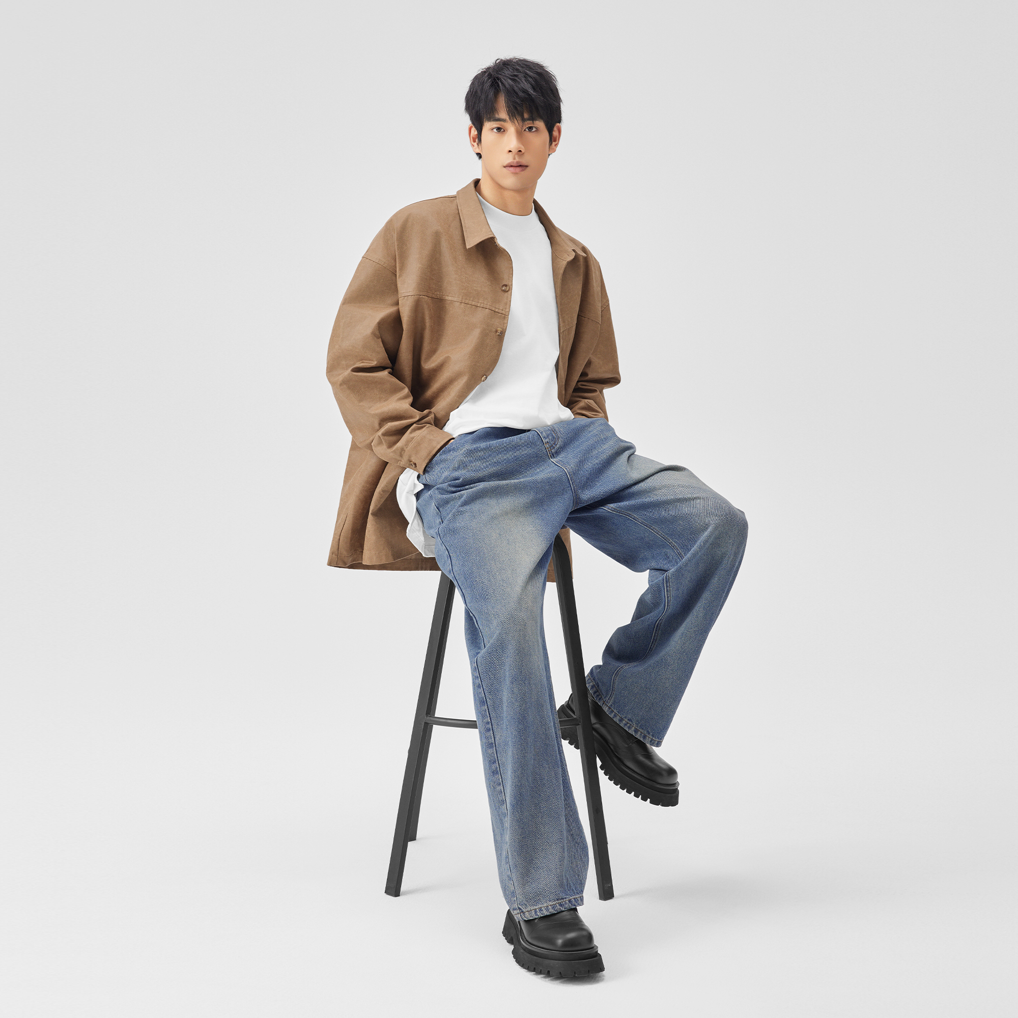 森柔牛仔森马牛仔裤男款2025新直筒裤长裤原色复古美式水洗宽松潮