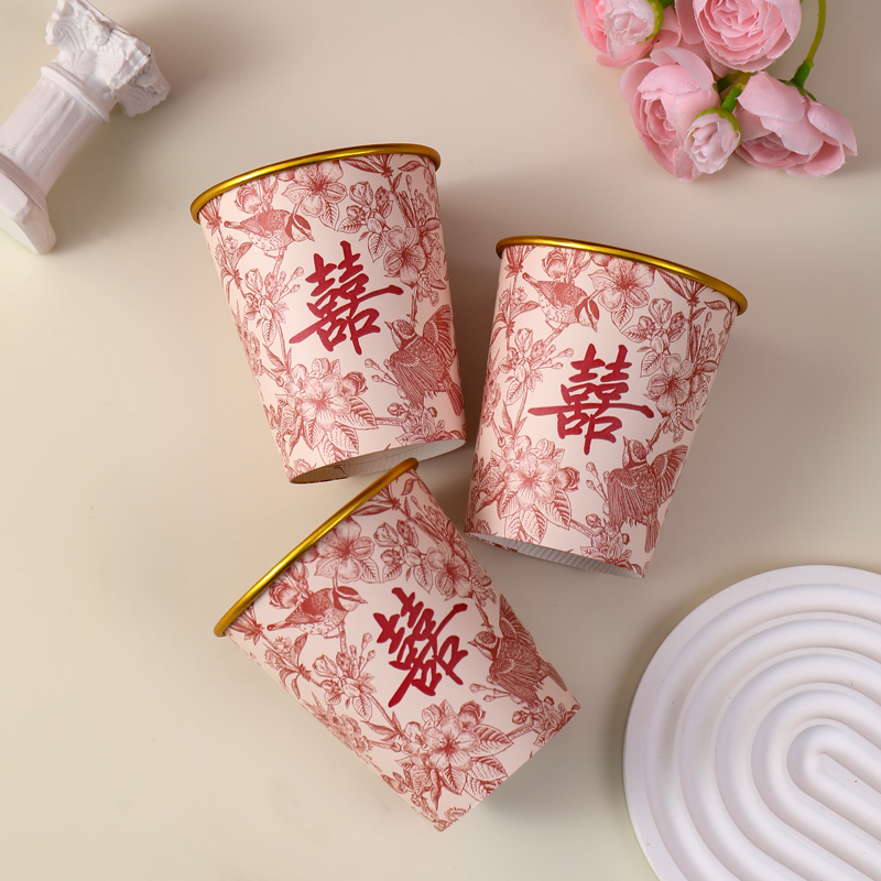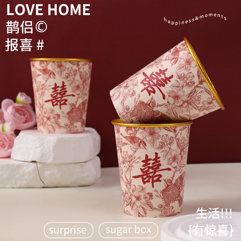 结婚一次性纸杯订婚纸杯家用婚宴加厚喜字杯婚礼用品家用敬茶杯