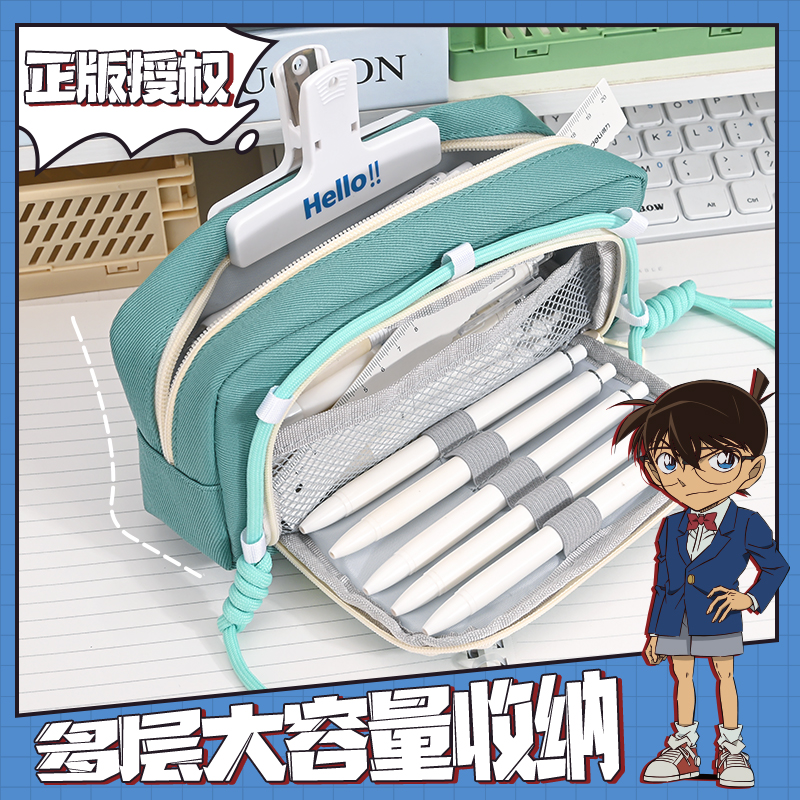 名侦探柯南联名笔袋女生高颜值ins风怪盗基德文具盒小学生大容量铅笔盒初中多层简约笔盒男生多功能学习用品