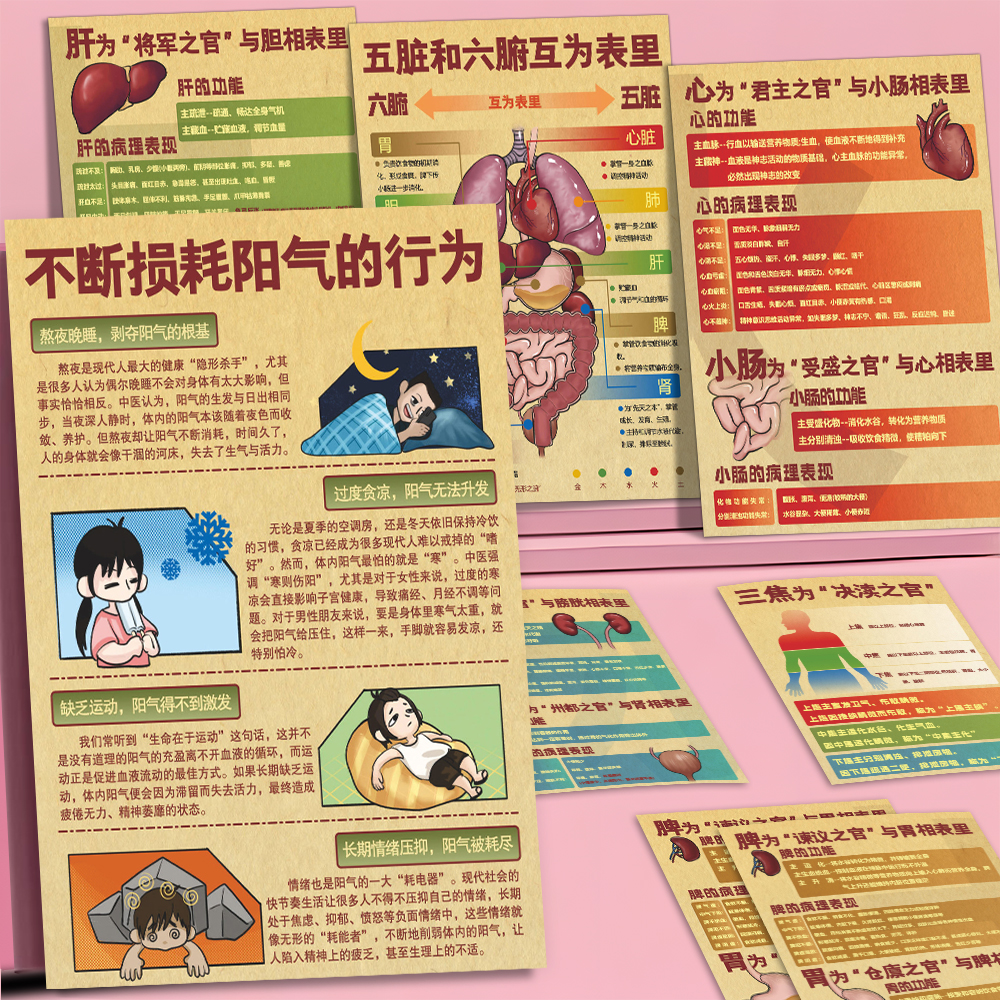 人体五脏六腑中医病理心肝脾肺肾五行医学文化症状表现分析小卡