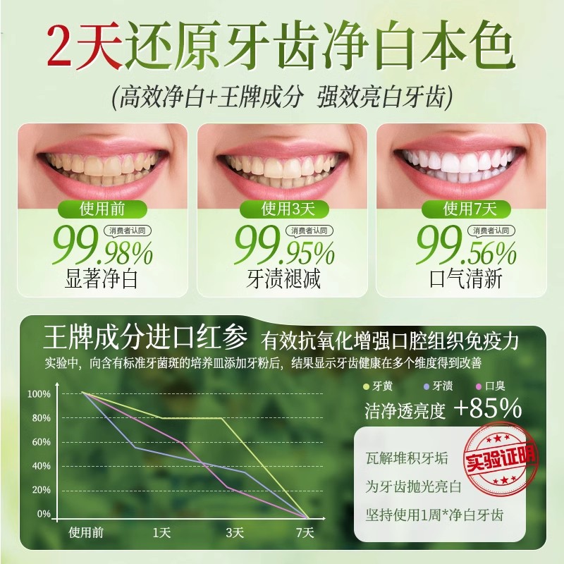 洁牙粉美白去黄烟渍洗牙齿渍清洁结石污垢益生菌除口臭神器亮白