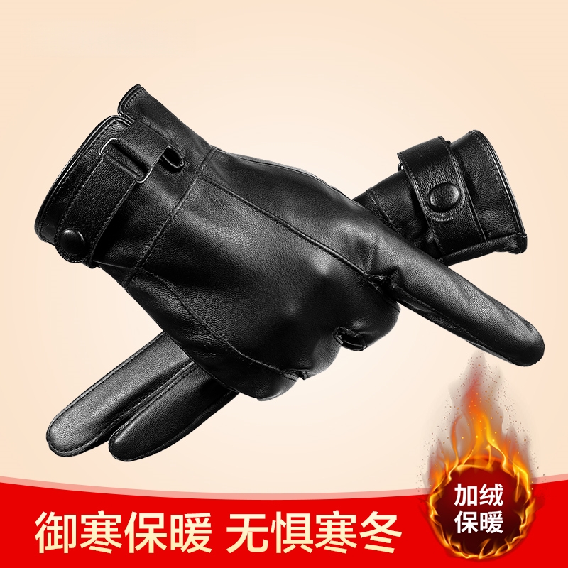 皮手套男士冬季骑行摩托车防风手套黑色秋冬加绒保暖骑车防水防寒