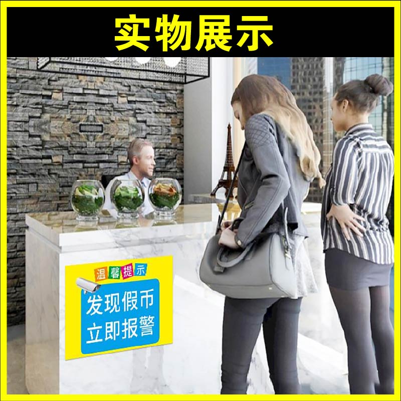 发现假币一律报警标识牌本店超市便利商场与警方联网使用直接没收立即并文明安全标识温馨警示告知墙标志贴纸