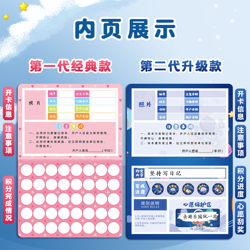 小学生积分本心愿存折积分记录本奖励孩子的积分卡奖励卡小红花奖励贴纸盖章印章收集本幼儿园儿童家庭积分册