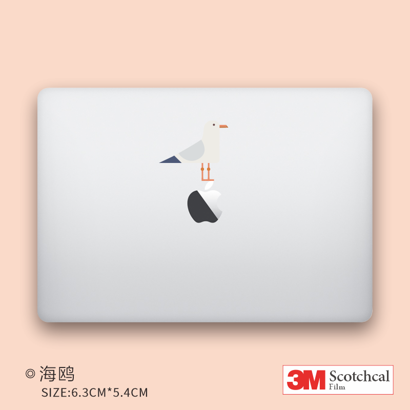艺贴进口铸造级带导气槽易定位技术 海鸥 笔记本电脑外壳局部创意卡通装饰挡划痕遮瑕贴纸画灰胶撕下无痕防水