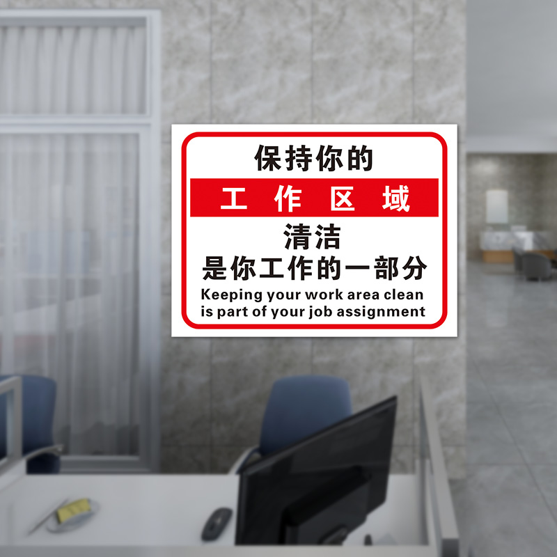 保持你的工作区域清洁是你工作的一部分 标语安全标志牌6S 5s管理标识牌贴工厂仓库车间办公区域提示牌警示牌