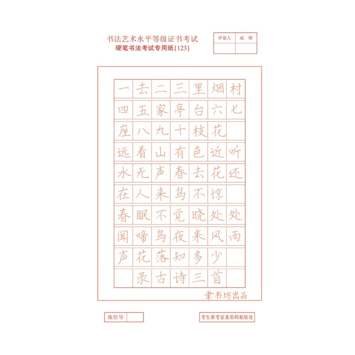 2025年聿书坊江苏书法水平等级硬笔书法考级1至10级描红纸练习纸