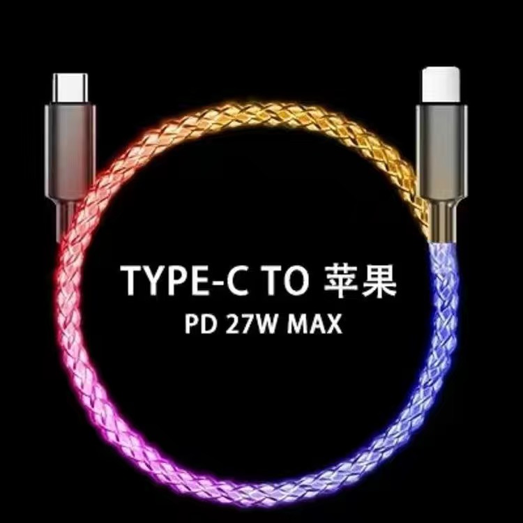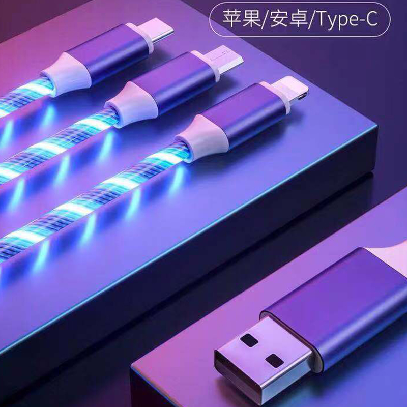 发光数据线适用于苹果华为oppo流光数据线三合一超级快充七彩充电线跑马灯发光type-c快充一拖三多头PD协议