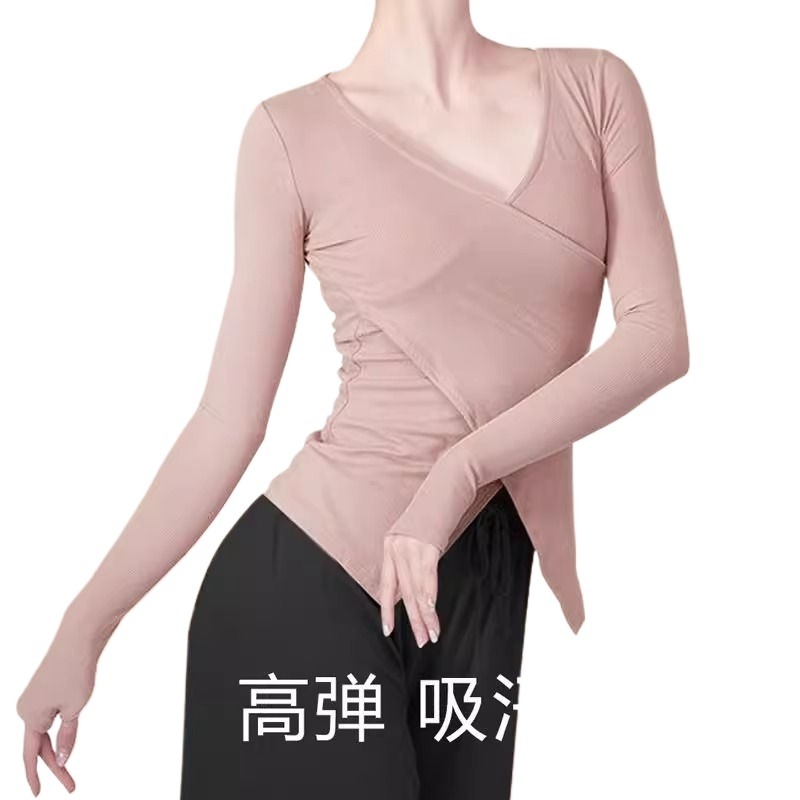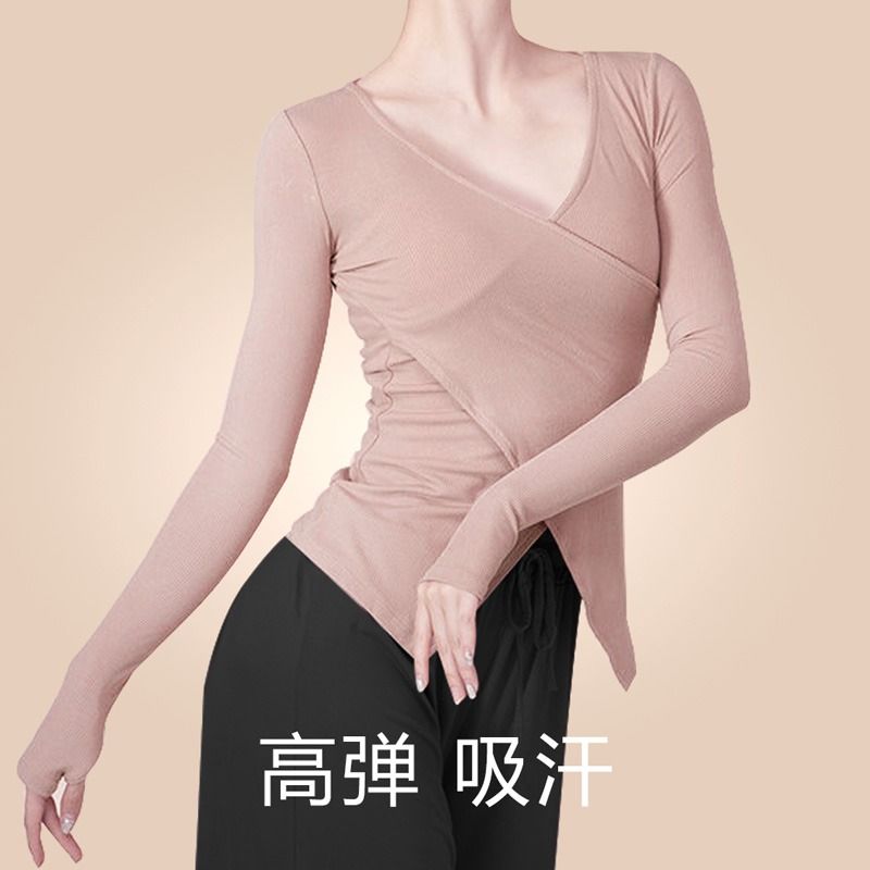 现代舞蹈练功服装显瘦中国古典舞长袖上衣形体服舞蹈服女黑色交叉