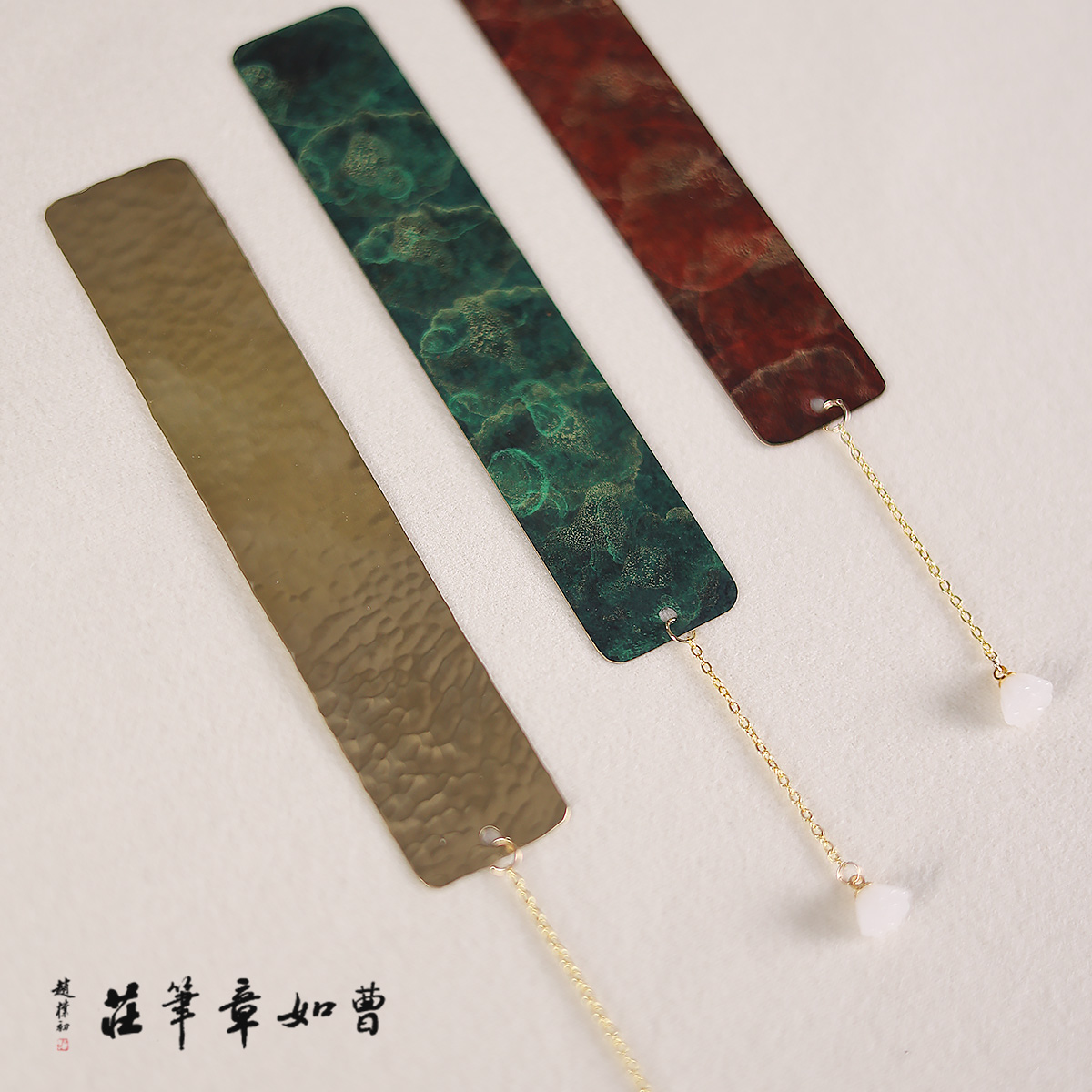 曹如章金属黄铜着色文房书签黄铜锤纹中国风高档古风文创创意书签