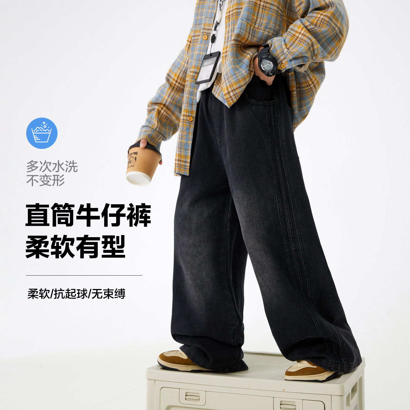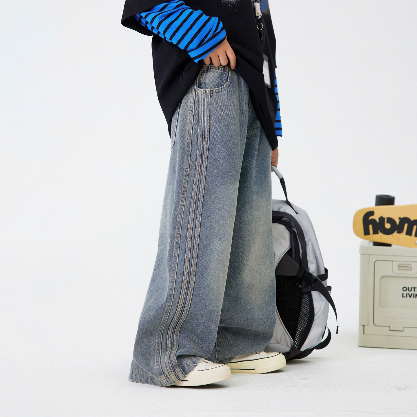 男大童早秋季韩范阔腿牛仔裤2025新款儿童男孩春秋直筒宽松薄裤子