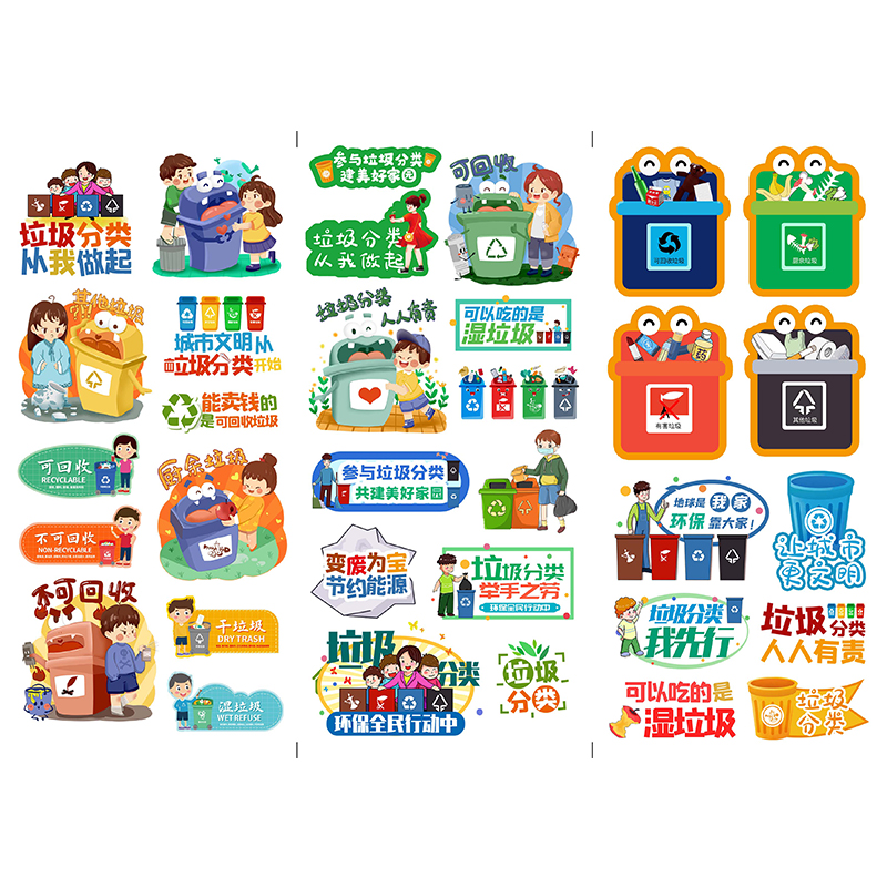 垃圾分类保护环境手帐贴纸环保手抄报贴画成长册素材组合宣传贴