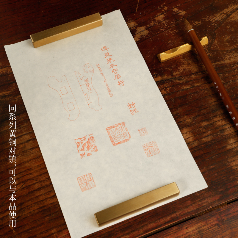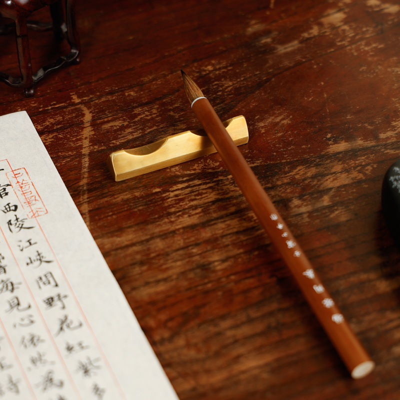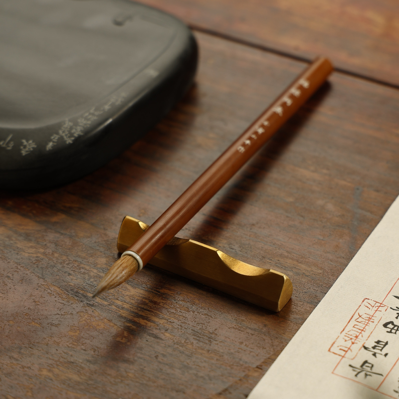 黄铜笔搁笔置铜镇纸镇尺 仿古金属实心学生小巧可爱铜器书法单支