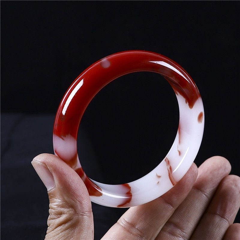 高级感中国风正品琉璃仿新疆鸡血玉和田玉石手镯金丝玉玉镯子