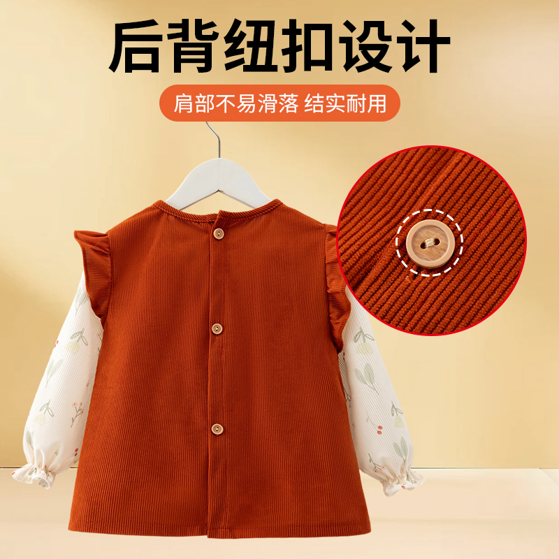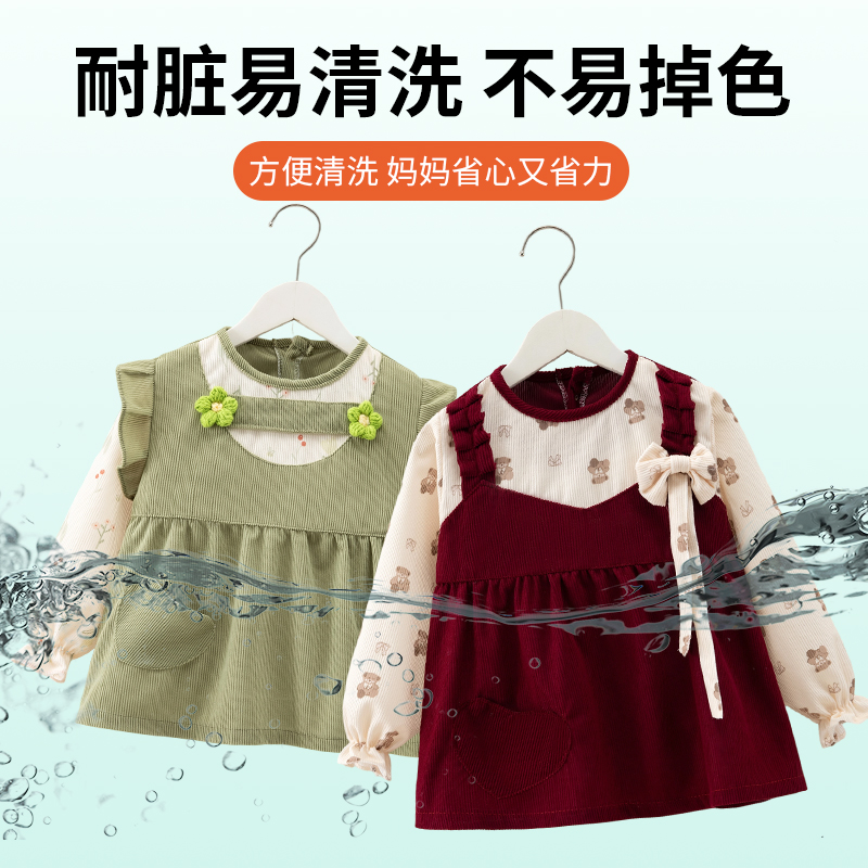 儿童罩衣女宝宝吃饭围兜防水防脏饭兜灯芯绒围裙秋冬洋气反穿护衣