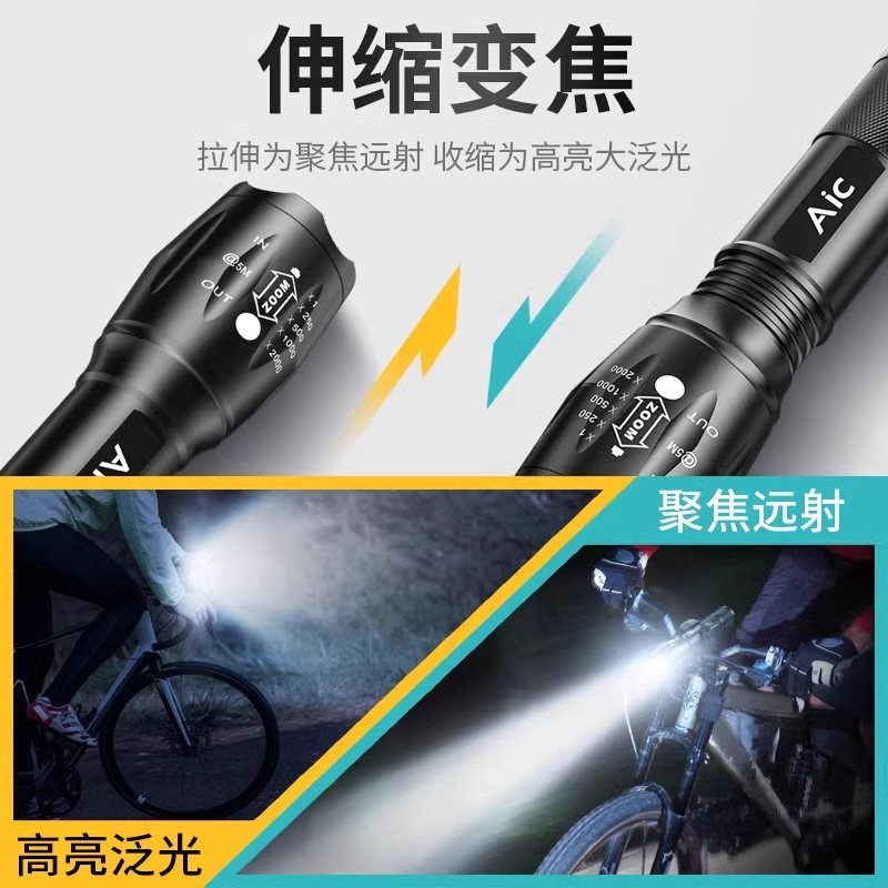 手电筒强光可充电USB户外超亮远射家用应急灯特种兵防水迷你学生