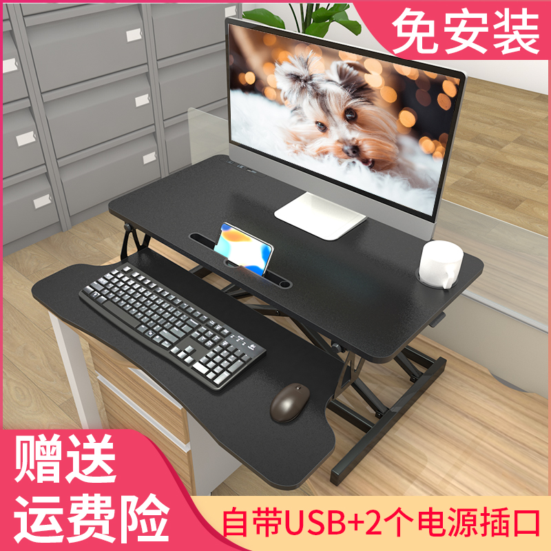 站立式电脑升降桌坐站交替折叠工作台显示器笔记本台式托架折叠增