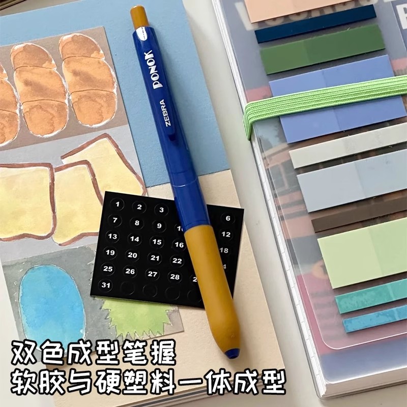 日本zebra斑马宝乐可中性笔美式撞色PONOK半针管按动式水笔JJ9学生刷题考试黑笔0.5mm黑色笔芯速干顺滑签字笔