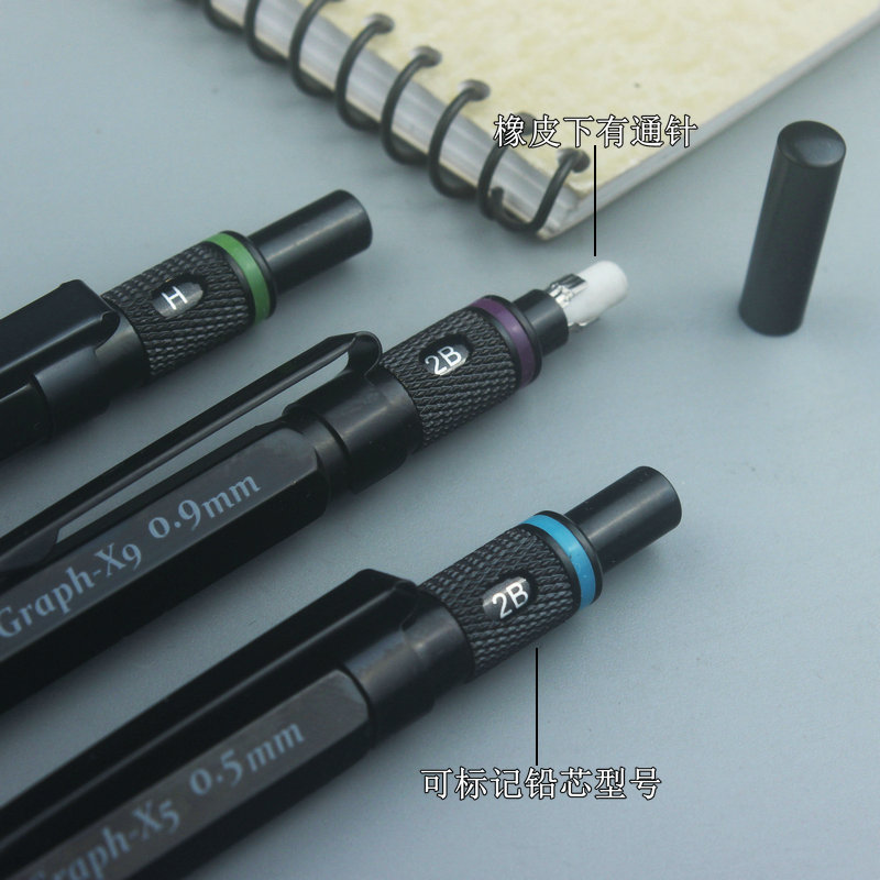绘图自动铅笔0.5/0.7/0.9全金属杆防滑握笔梯级式渐细笔头 专业型