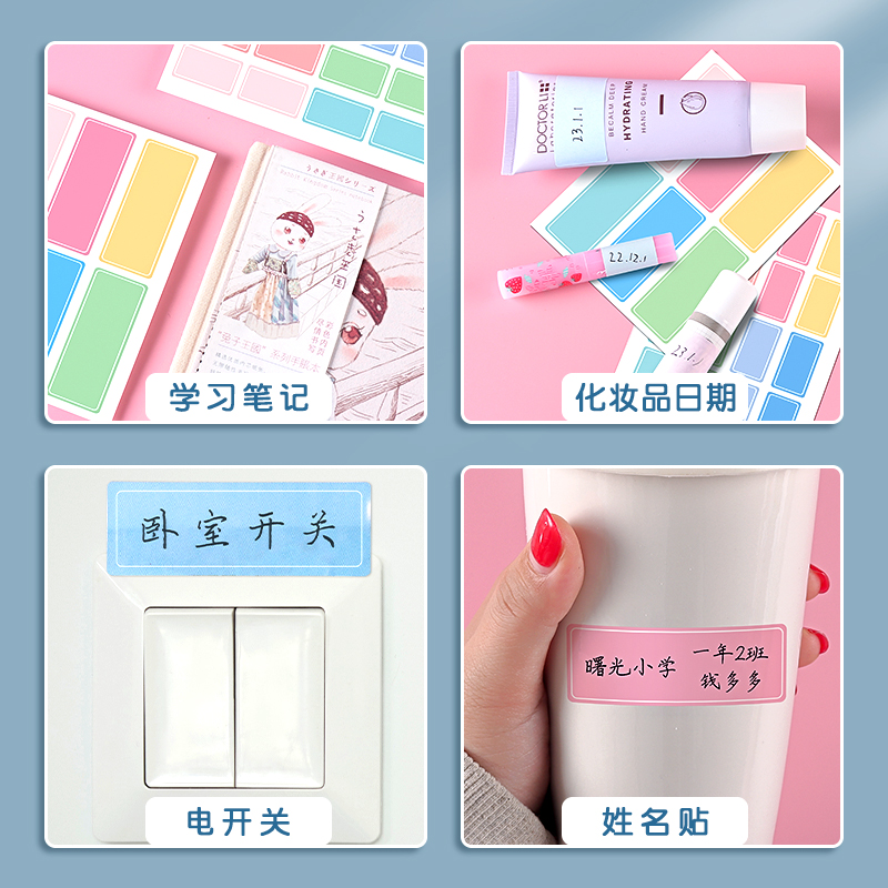 彩色不干胶防水标签贴纸自粘手写姓名贴名字贴便签日期标签贴索引口取纸便利贴收纳食物分类标记贴水杯记号贴