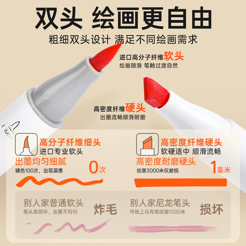 touchcolor 5代进口软头马克笔套装美术生动漫专用小学生初中生水彩笔touch双头36油性48彩色笔120色画画笔