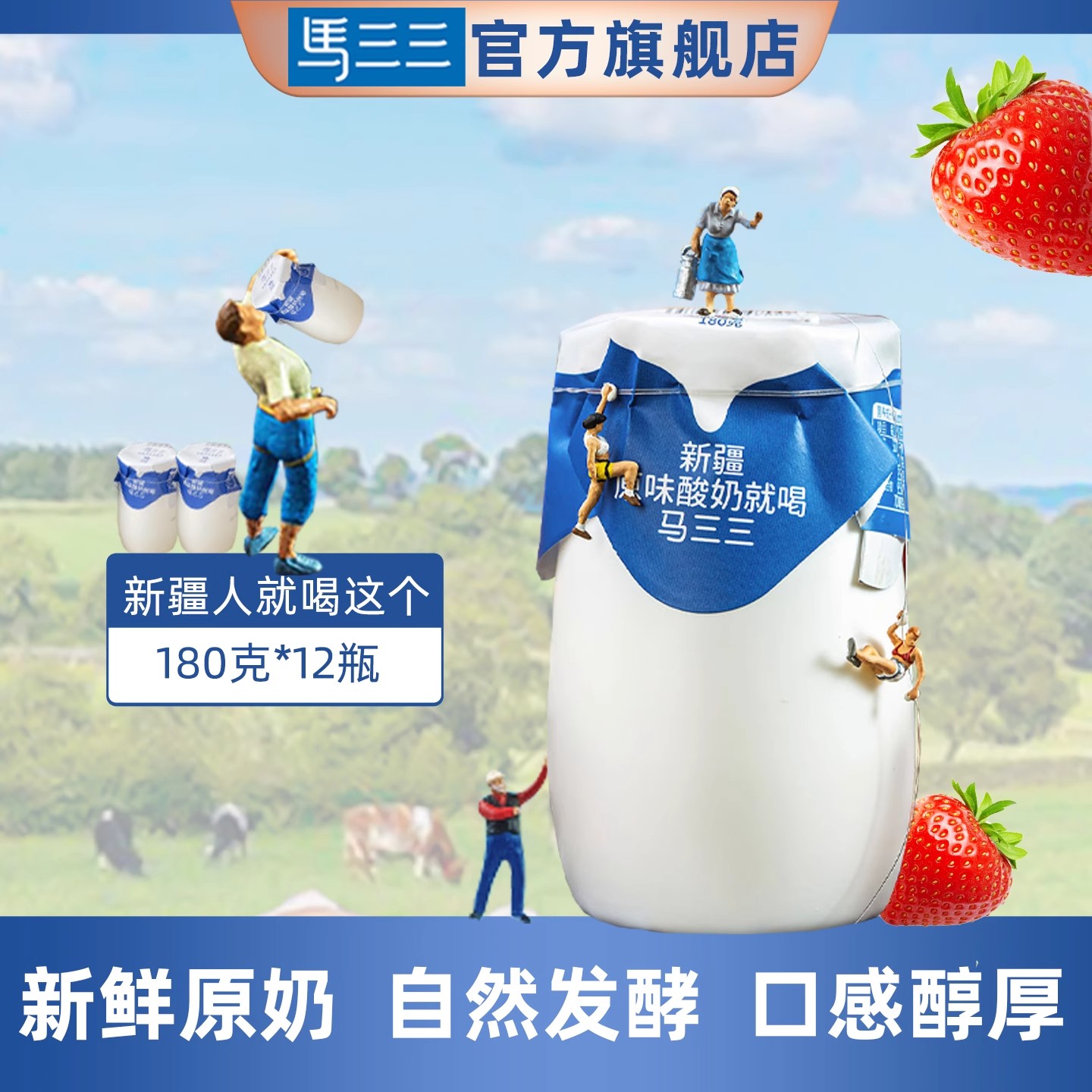 新疆马三三原味老酸奶180gx12罐生牛乳发酵代酸牛奶整箱蔗糖瓶装