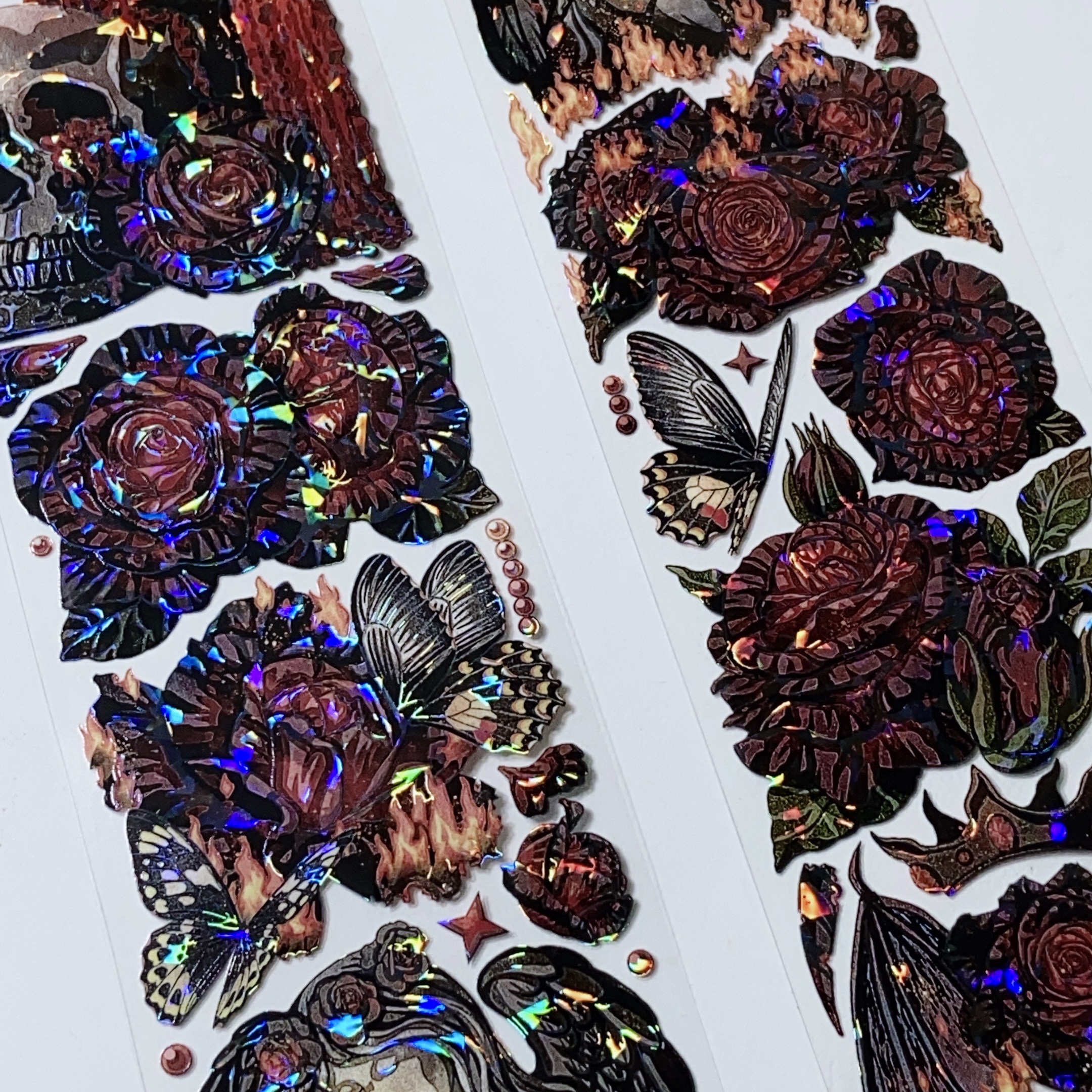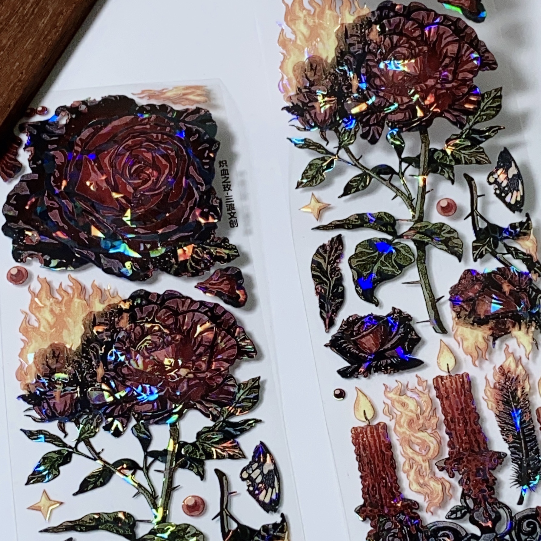 炽血之玫.手帐pet胶带暗黑火焰玫瑰咕卡流麻手账和纸贴纸分装素材