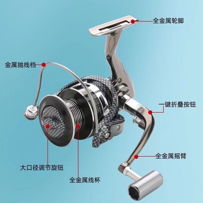全金属纺车轮无间隙远投轮海竿轮钓鱼路亚抛竿渔轮斜口收线大物