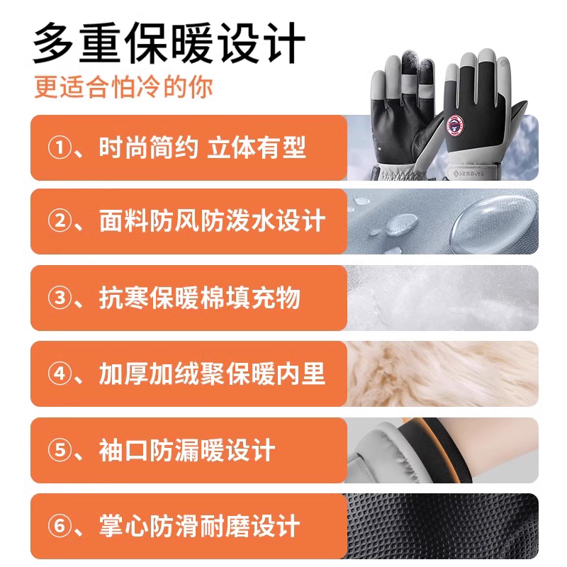 手套男士冬季骑行电动车防风防寒加绒加厚保暖可触屏棉滑雪手套女