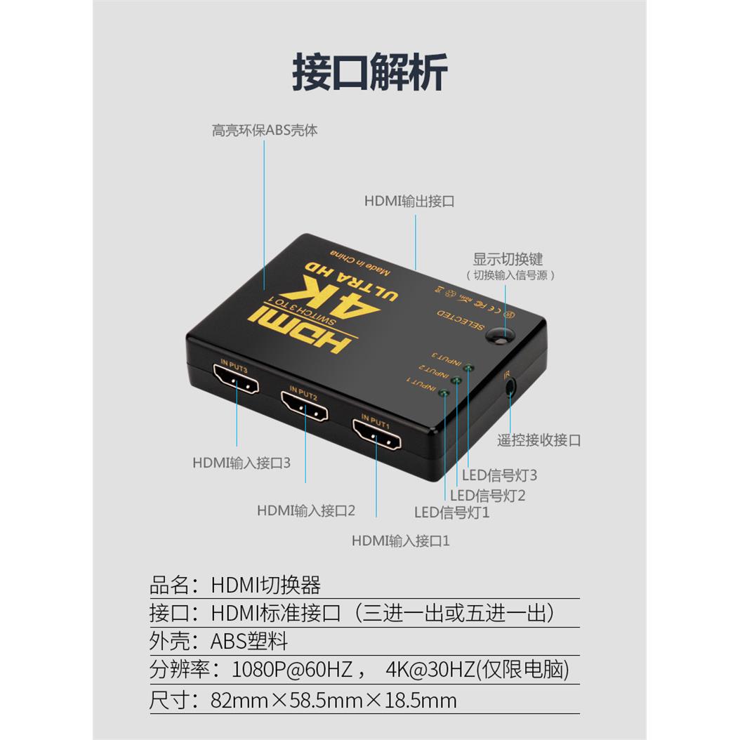 hdmi切换器三进一分配器二2进1出切换电视屏幕音视高清遥控分屏高