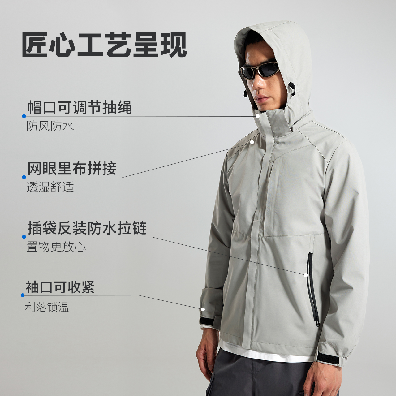 罗蒙情侣款男女同款户外冲锋夹克衣服2025秋季新款可拆卸帽外套男